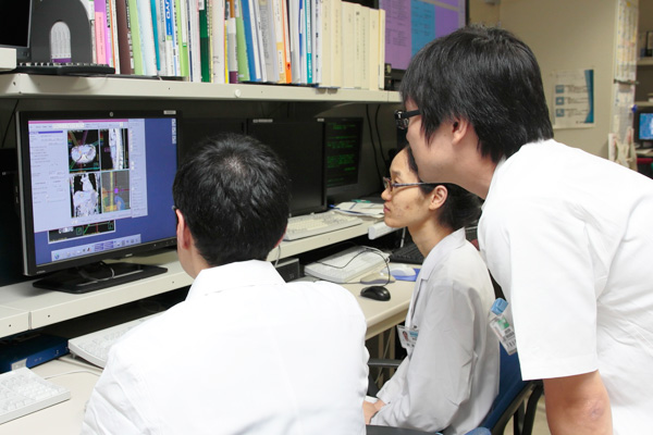 - 放射線治療科初診:放射線治療の適応決定をします。問診、診察、各種検査の上、放射線治療を行った方がよいかどうか、行うとしたらどのようなタイミング、スケジュール、併用療法を用いるか、などを決定します。院内からの場合は、カンファレンス(他科との適応検討会)、オーダリング(紹介、適応相談)などを介して、放射線治療科の初診外来受診となります。院外からの場合は、手紙などによる紹介状および過去の画像情報や検査データをご持参いただき、初診外来受診となります(完全予約制です)。この際、治療方法の詳細や想定される副作用などの説明を行います。