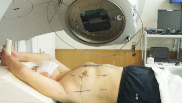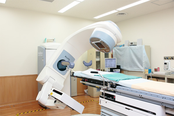 - 毎日の放射線照射:治療計画CTの1日~2週間後に、毎日の放射線照射が始まります。照射は通常1日1回で、休日を除く月曜から金曜まで、照射時間は10分から30分位です。治療の回数は、がんの種類によって異なり、1回~40回(平均25回程度)まで様々です。放射線照射は、リニアックという装置で行います。照射そのものには、痛みなどの苦痛は伴いません。患者さんがすることは、装置の台上にリラックスした体勢で寝ているだけです。放射線照射を受けることによって、患者さんの身体が放射線を帯びることはありません。身体には、放射線の効果だけが残り、放射線自体は残りません。